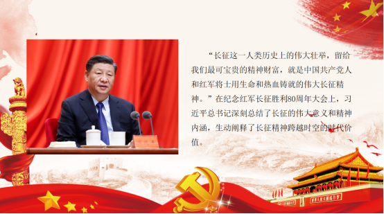 潘玥同志重点阐述了长征精神的基本内涵,长征精神是中国共产党在二万五千里长征中创造的革命精神。红军指战员在长征途中表现出对革命理想和事业无比的忠诚、坚定的信念,表现出不怕牺牲、敢于胜利的无产阶级革命乐观主义精神,表现出顾全大局、严守纪律、亲密团结的高尚品德,创造了伟大的长征精神,集中体现为:坚韧不拔,自强不息,勇往直前,最显著特点是“一不怕苦,二不怕死”的革命英雄主义精神。长征精神是中华民族百折不挠、自强不息的民族精神的最高表现,是保证我们革命和建设事业走向胜利的强大精神力量。她还向大家介绍了长征长度的计算方法,带领大家观看“红军是怎样走完长征的”、“全面复原四支红军长征路线”等视频资料,解读了长征的历史评价,使参会党员深切感受到伟大的长征精神。