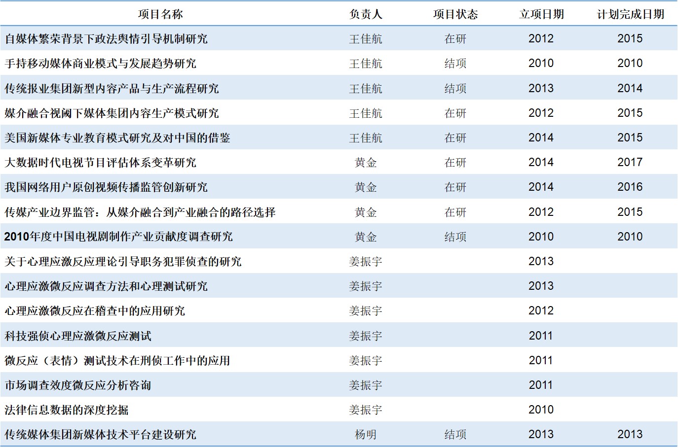 互联网与新媒体研究所致力于互联网与新媒体产业研究、互联网与新媒体内容研究、互联网与新媒体技术研究,基于与业界媒体机构共建平台,开展互联网与新媒体实践教学,搭建以“产学研贯通”为特色的研究体系。